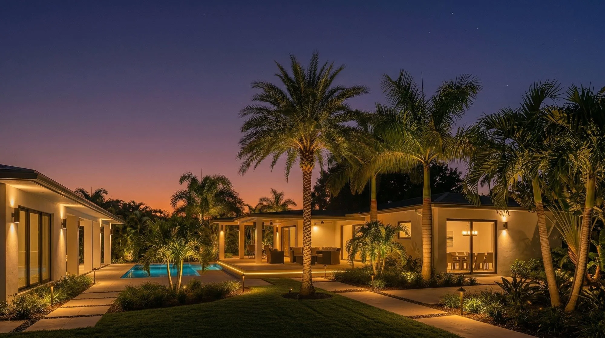 Professional landscape lighting that adds value, safety, and soul to your Florida home.